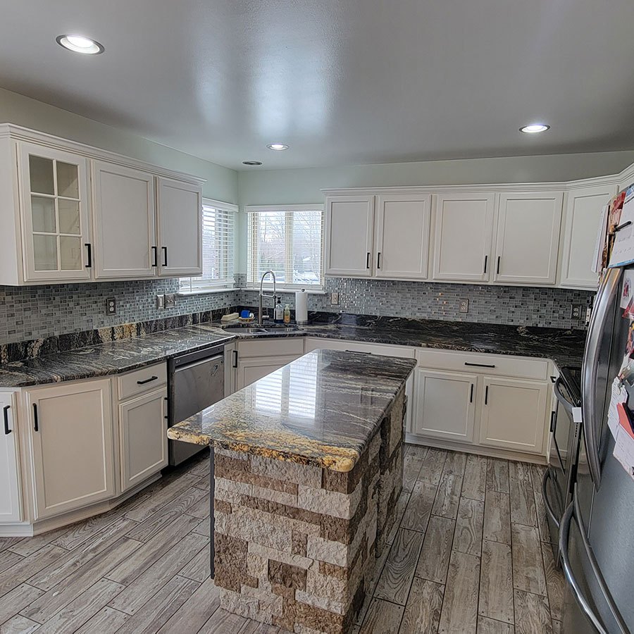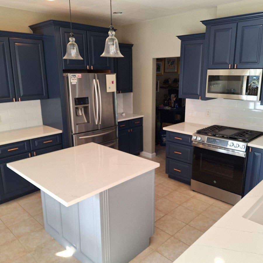 Don’t trust your cabinet refinishing to inexperienced house painters. Let us explain to you our thorough prep work, coats of primer, and low VOC paint that will give you a smooth finish and a durable cabinet surface.